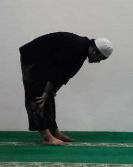 Kelima, ruku’ disertai thumakninah, sehingga anggota-anggota badan diam sebelum mengangkat kepala dari ruku’ untuk I’tidal, Kewajiban ruku’ bagi orang berdiri adalah membungkuk setelah Fatihah, sehingga dua telapak tangan sampai pada dua lutut apabila pelaku shalat sedang tangan dan lututnya. Sunat dalam ruku meratakan antara punggung dan leher sehingga bagaikan satu papan, menegakkan kedua betis, memegang dua lutut dengan tangan dan merenggangkan jari-jari tangan ke arah kiblat. Yang dimaksudkan adalah tidak menyerongkan jari-jari ke arah kanan atau kiri.